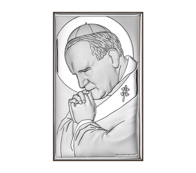 • Edles Silberbild mit Papst Johannes Paul II – ein ausdrucksstarkes Symbol für Glauben, Demut und geistliche Führung. Eine besondere Erinnerung für alle, die Wert auf religiöse Werte und inspirierende Persönlichkeiten legen. Gefertigt aus hochwertigem, silberveredeltem Material überzeugt das Bild durch seine langlebige Qualität und eine elegante, zeitlose Ausstrahlung. Es fügt sich harmonisch in jedes Zuhause ein und setzt einen stilvollen, spirituellen Akzent. Ideal als Geschenk zur Erstkommunion, Firmung oder zu anderen religiösen Anlässen – eine bedeutungsvolle Aufmerksamkeit mit bleibendem Wert.