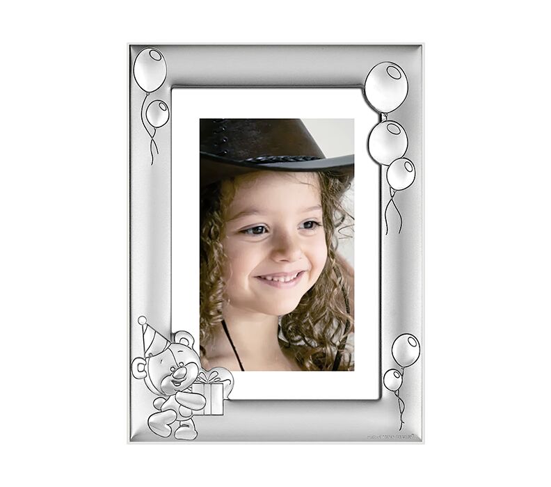 • Bezaubernder Fotorahmen aus Silber - eine liebevolle und stilvolle Art, die schönsten Kindheitsmomente festzuhalten. Die sanft matte Oberfläche wird von einem niedlichen Teddybären mit Luftballons geschmückt, der dem Rahmen eine leichte, fröhliche Ausstrahlung verleiht. Ob zur Geburt, zur Taufe, zum ersten Geburtstag oder als Geschenk zum Kindergeburtstag – dieser Rahmen ist eine wunderschöne Geschenkidee mit bleibendem Wert. Er setzt das Foto Ihres Kindes besonders charmant in Szene und schafft eine Erinnerung, die auch nach vielen Jahren noch Freude bereitet.